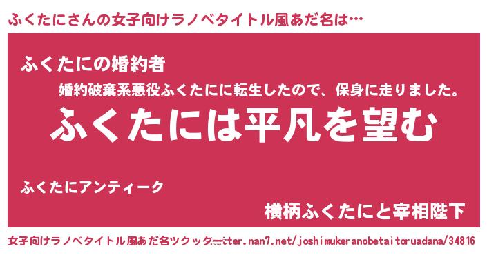 | 男性向けラノベタイトル風あだ名 | 『ダンジョンにふくたにを求めるのは間違っているだろうか』 |