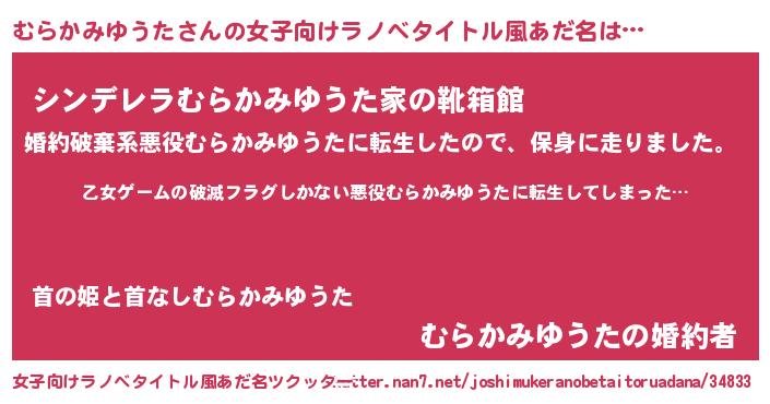 | 意味不明あだ名 | 『住所不定無職むらかみゆうた(68歳)』 |