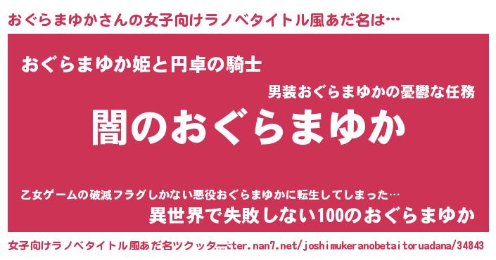 | 男性向けラノベタイトル風あだ名 | 『Re:おぐらまゆかから始める異世界生活』 |