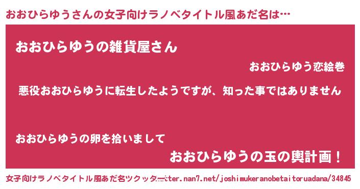 | 胡散臭い通販商品みたいなあだ名 | 『あなたにだけ特別に提供する限定10本のレアな日本酒…その名も「おおひらゆう」』 |