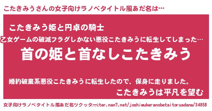 | 男性向けラノベタイトル風あだ名 | 『はたらくこたきみうさま!』 |