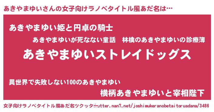 | 男性向けラノベタイトル風あだ名 | 『Re:あきやまゆいから始める異世界生活』 |