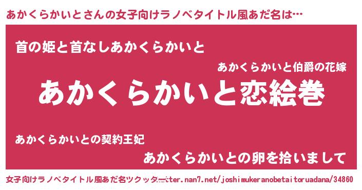 | 男性向けラノベタイトル風あだ名 | 『ノーゲーム・ノーアカクラカイト』 |