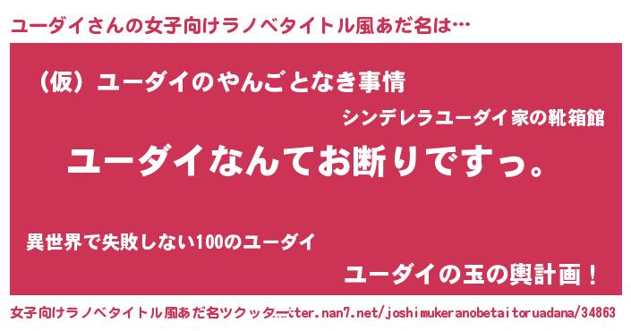 | 男性向けラノベタイトル風あだ名 | 『魔法科高校のユーダイ』 |