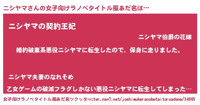 | 胡散臭い通販商品みたいなあだ名 | 『来世でも幸せになれる健康食品…その名も「ニシヤマ」』 |
