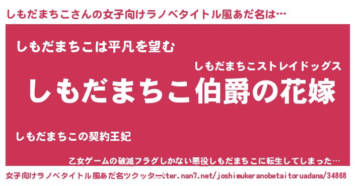 | 男性向けラノベタイトル風あだ名 | 『やはりしもだまちこの青春ラブコメはまちがっている 』 |
