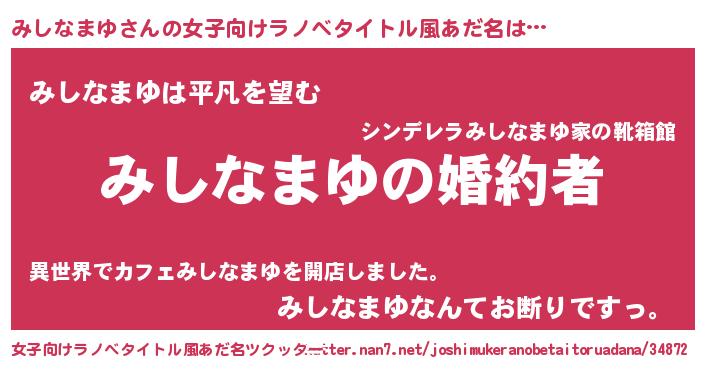 | 胡散臭い通販商品みたいなあだ名 | 『運命の人と巡り会える高級そうな絵画…その名も「みしなまゆ」』 |