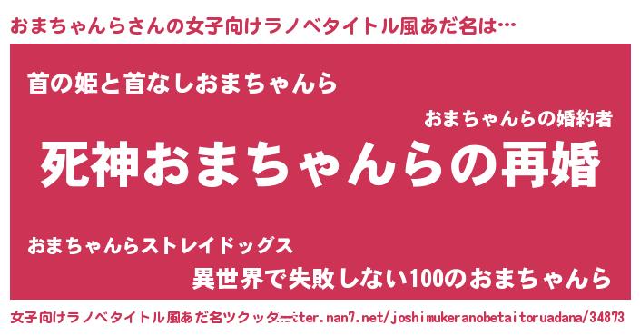 | 男性向けラノベタイトル風あだ名 | 『ノーゲーム・ノーオマチャンラ』 |
