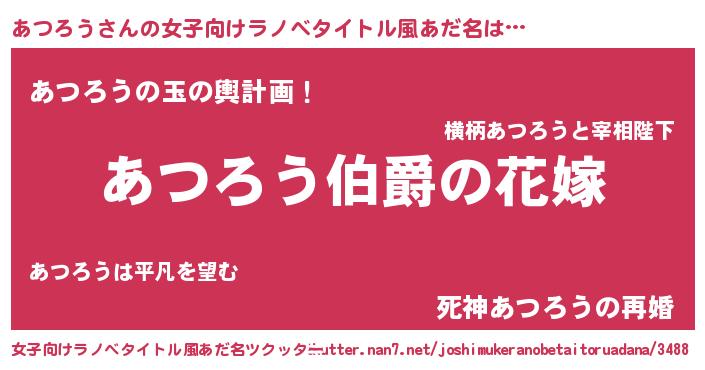 | 肩書あだ名 | 『あつろう国家主席』『あつろう少尉』 |