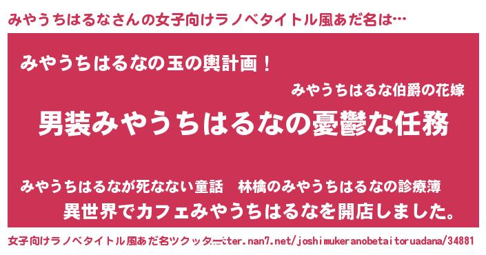 | ヘコむあだ名 | 『みやうちはるな(笑)』『酢こんぶ』 |
