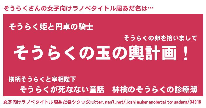 | ヒーロー風カッコイイあだ名 | 『スーパーソウラク』『仮面ソウダー』 |