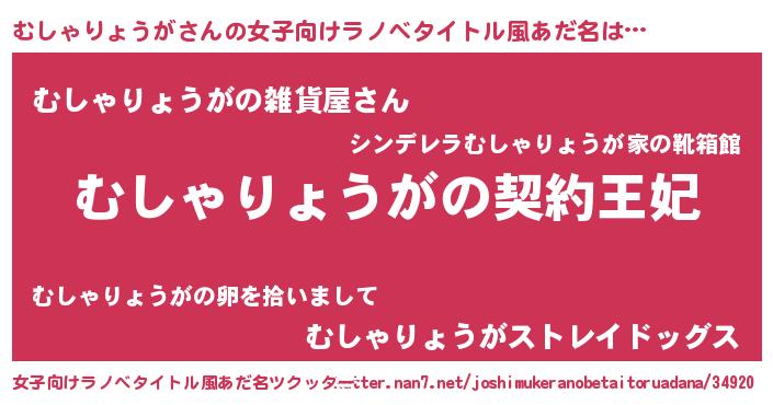 | 男性向けラノベタイトル風あだ名 | 『誰もが恐れるあのむしゃりょうがが、ぼくの専属メイドになるようです。』 |