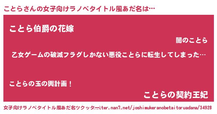 | ヘコむあだ名 | 『豆乳』『ことら(笑)』『ことっ子』 |