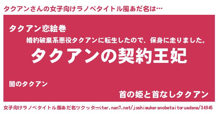 | 胡散臭い通販商品みたいなあだ名 | 『来世でも幸せになれる健康食品…その名も「タクアン」』 |
