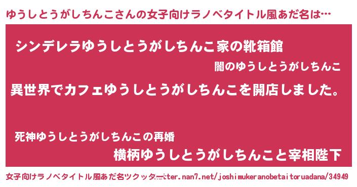 | 男性向けラノベタイトル風あだ名 | 『誰もが恐れるあのゆうしとうがしちんこが、ぼくの専属メイドになるようです。』 |