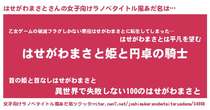 | 男性向けラノベタイトル風あだ名 | 『ハセガワマサトアートオンライン』 |