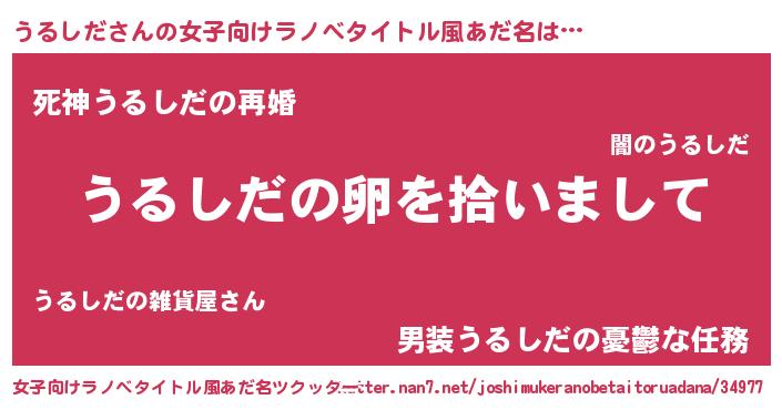| 男性向けラノベタイトル風あだ名 | 『うるしだの嫁は女の子じゃないと思った?』 |