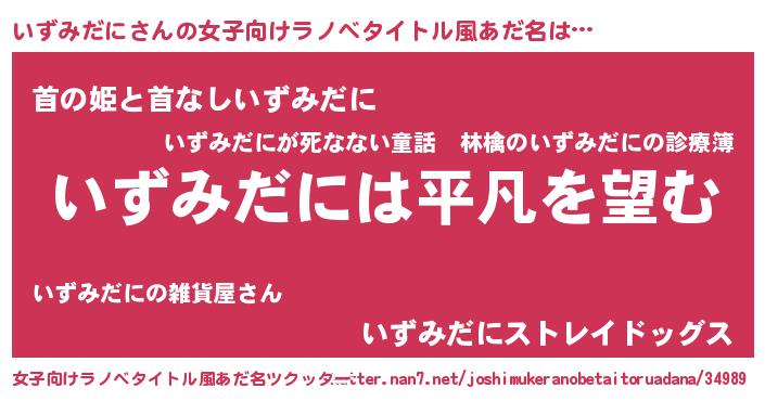 | 胡散臭い通販商品みたいなあだ名 | 『信頼と実績のサプリメント…その名も「いずみだに」』 |