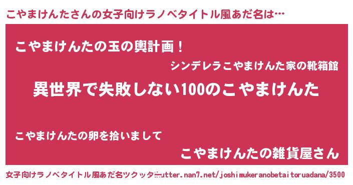 | 男性向けラノベタイトル風あだ名 | 『こやまけんたという概念が存在しない退屈な世界 』 |