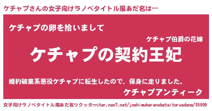 | 男性向けラノベタイトル風あだ名 | 『ケチャプという概念が存在しない退屈な世界 』 |