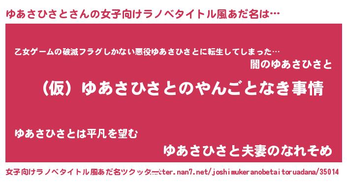 | ファンタジー風あだ名 | 『ユアフェル』『ヴァルユアーナ』 |