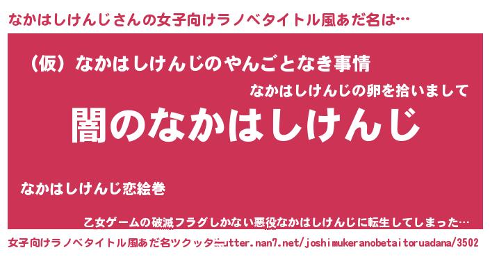 | 男性向けラノベタイトル風あだ名 | 『Re:なかはしけんじから始める異世界生活』 |