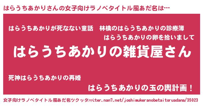 | 男性向けラノベタイトル風あだ名 | 『やはりはらうちあかりの青春ラブコメはまちがっている 』 |