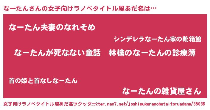 | 男性向けラノベタイトル風あだ名 | 『魔弾の王となーたん』 |