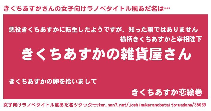 | 男性向けラノベタイトル風あだ名 | 『やはりきくちあすかの青春ラブコメはまちがっている 』 |