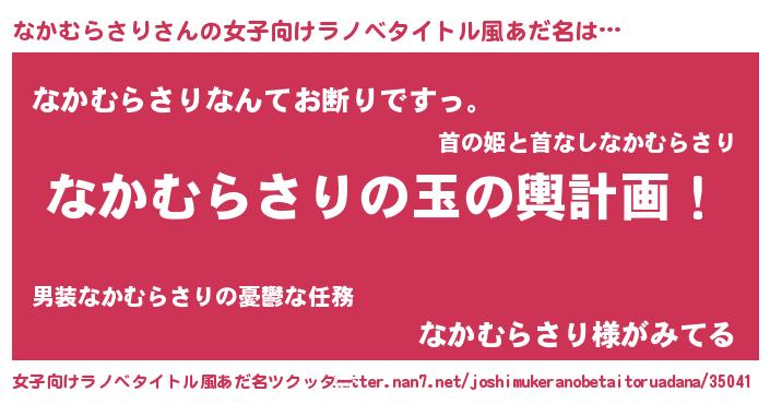 | 肩書あだ名 | 『なかむらさり少佐』『なかむらさり総統』 |