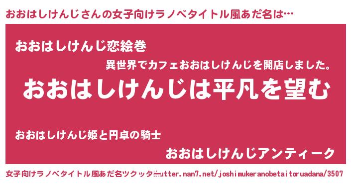 | 男性向けラノベタイトル風あだ名 | 『ダンジョンにおおはしけんじを求めるのは間違っているだろうか』 |
