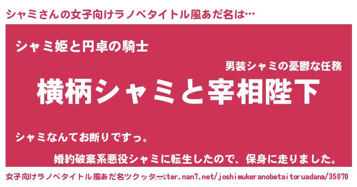 | ヘコむあだ名 | 『シャにー』『シャミ(笑)』『牛乳』 |