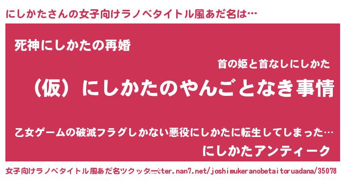 | ファンタジー風あだ名 | 『ニシフェル』『クインニット』 |