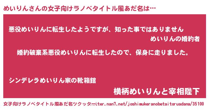 | 男性向けラノベタイトル風あだ名 | 『メイリンスレイヤー』『緋弾のメイリン』 |