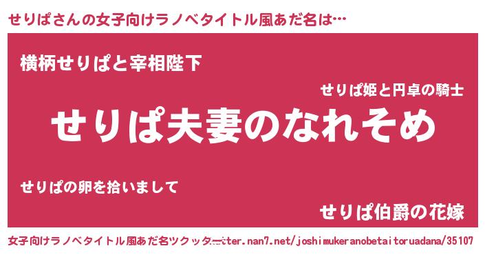 | ヒーロー風カッコイイあだ名 | 『正義の使者せりぱ』『スーパーセリパ』 |