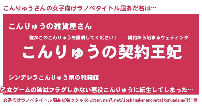 | 男性向けラノベタイトル風あだ名 | 『こんりゅうという概念が存在しない退屈な世界 』 |