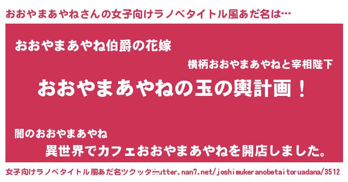 | 男性向けラノベタイトル風あだ名 | 『転生したらおおやまあやねだった件』 |