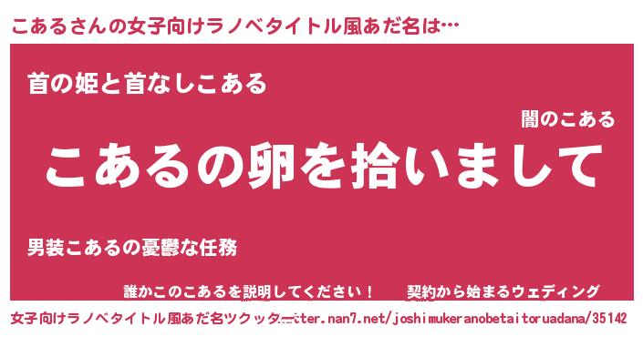 | 意味不明あだ名 | 『とにかく怪しいこある』『自称こある』 |