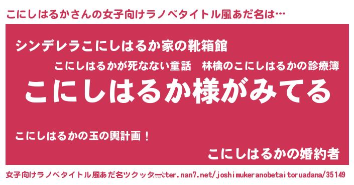 | 男性向けラノベタイトル風あだ名 | 『こにしはるかの嫁は女の子じゃないと思った?』 |
