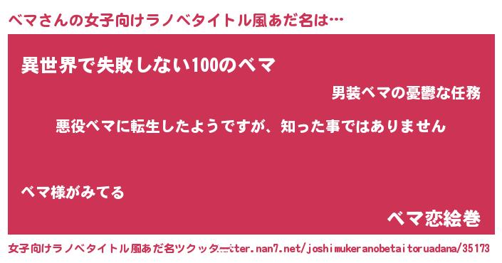 | 男性向けラノベタイトル風あだ名 | 『この素晴らしい世界にベマを!』 |