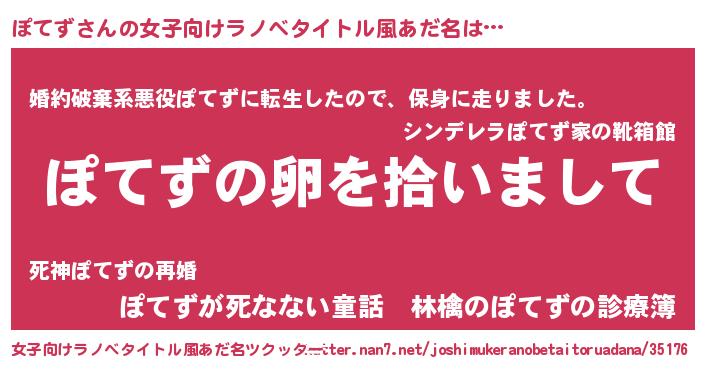 | 男性向けラノベタイトル風あだ名 | 『ダンジョンにぽてずを求めるのは間違っているだろうか』 |