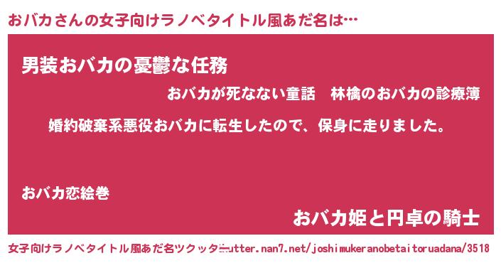 | 胡散臭い通販商品みたいなあだ名 | 『必ず成功する霊験あらたかなお札…その名も「おバカ」』 |