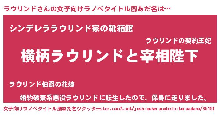 | 男性向けラノベタイトル風あだ名 | 『ラウリンドに滅ぼされるだけの簡単なお仕事です』 |