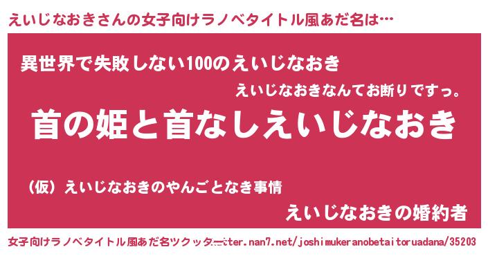 | 男性向けラノベタイトル風あだ名 | 『はたらくえいじなおきさま!』 |