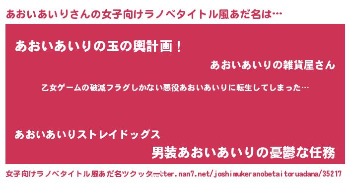 | 欧米人風あだ名 | 『ダレノガレあおいあいり』 |