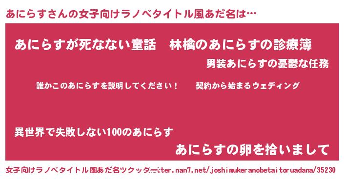 | 胡散臭い通販商品みたいなあだ名 | 『億万長者になれるブレスレット…その名も「あにらす」』 |