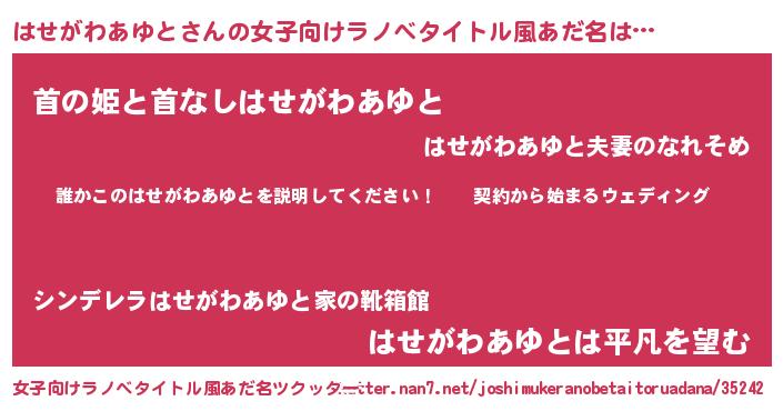 | 男性向けラノベタイトル風あだ名 | 『ハセガワアユトアートオンライン』 |
