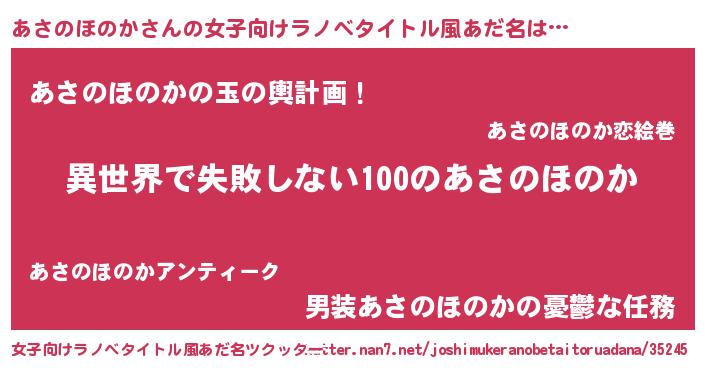 | 男性向けラノベタイトル風あだ名 | 『あさのほのかという概念が存在しない退屈な世界 』 |