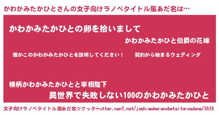 | 胡散臭い通販商品みたいなあだ名 | 『億万長者になれる水晶球…その名も「かわかみたかひと」』 |