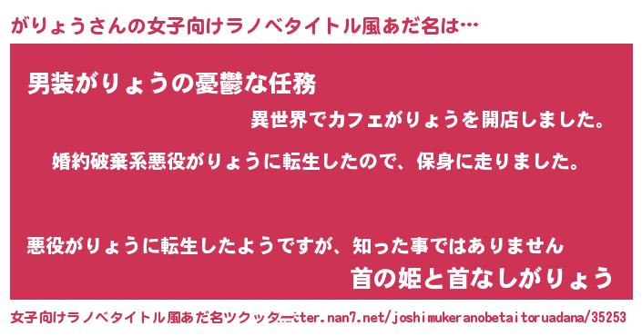 | 胡散臭い通販商品みたいなあだ名 | 『来世でも幸せになれる健康食品…その名も「がりょう」』 |